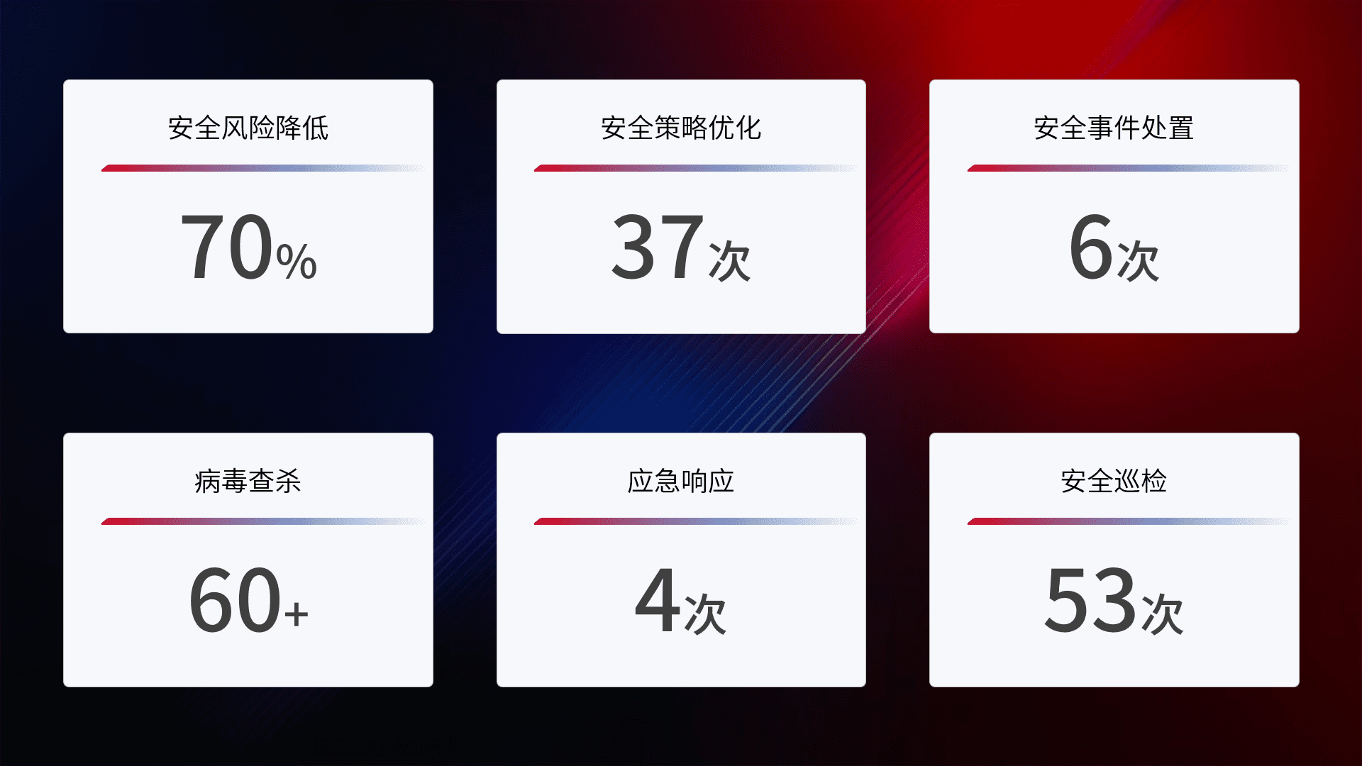 提供全面的安全事件报告体系,,,包括处置报告、、、周报、、季度和年度总结,,结合持续监控,,帮助客户深入了解网络安全状况。。。